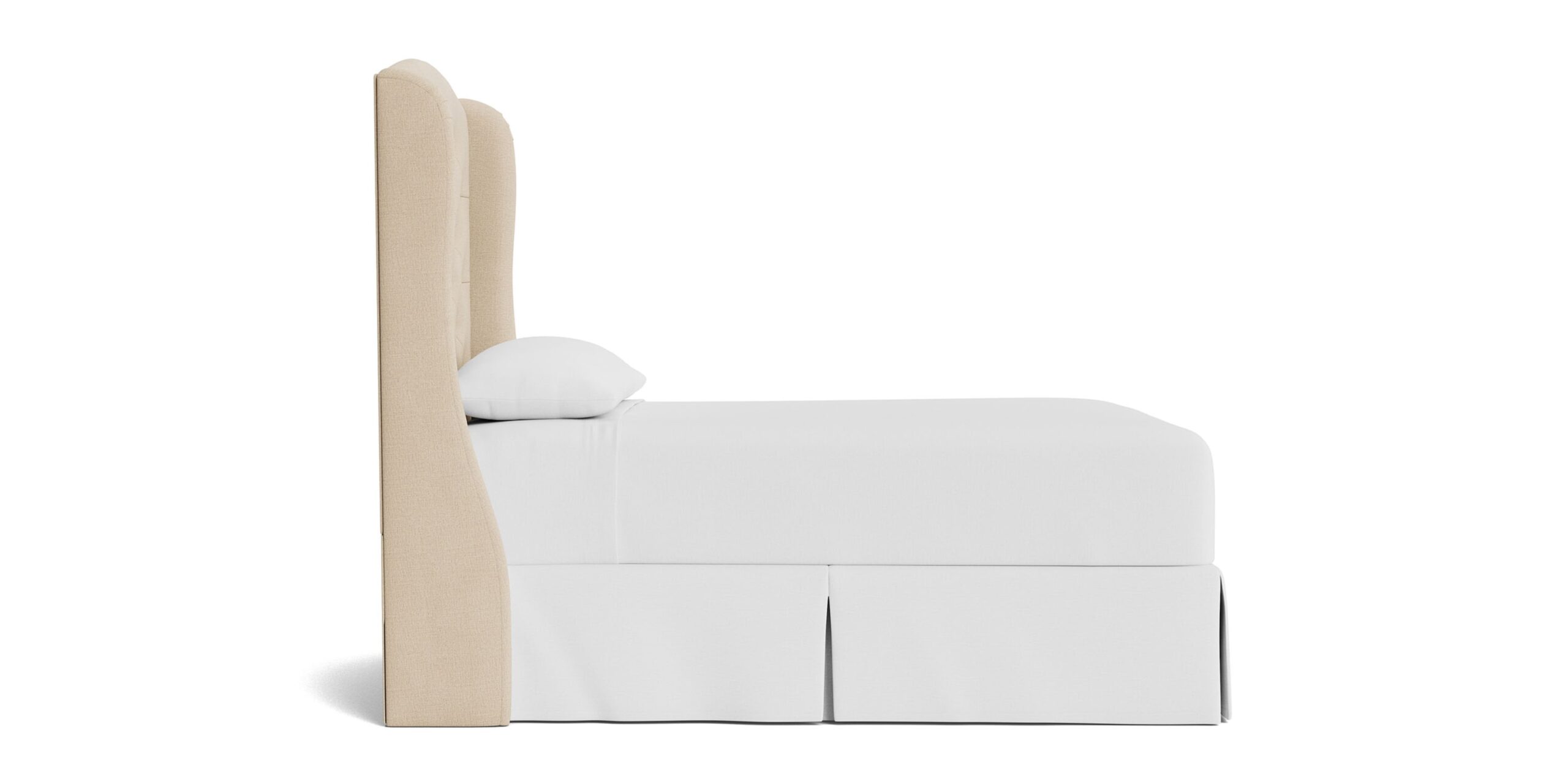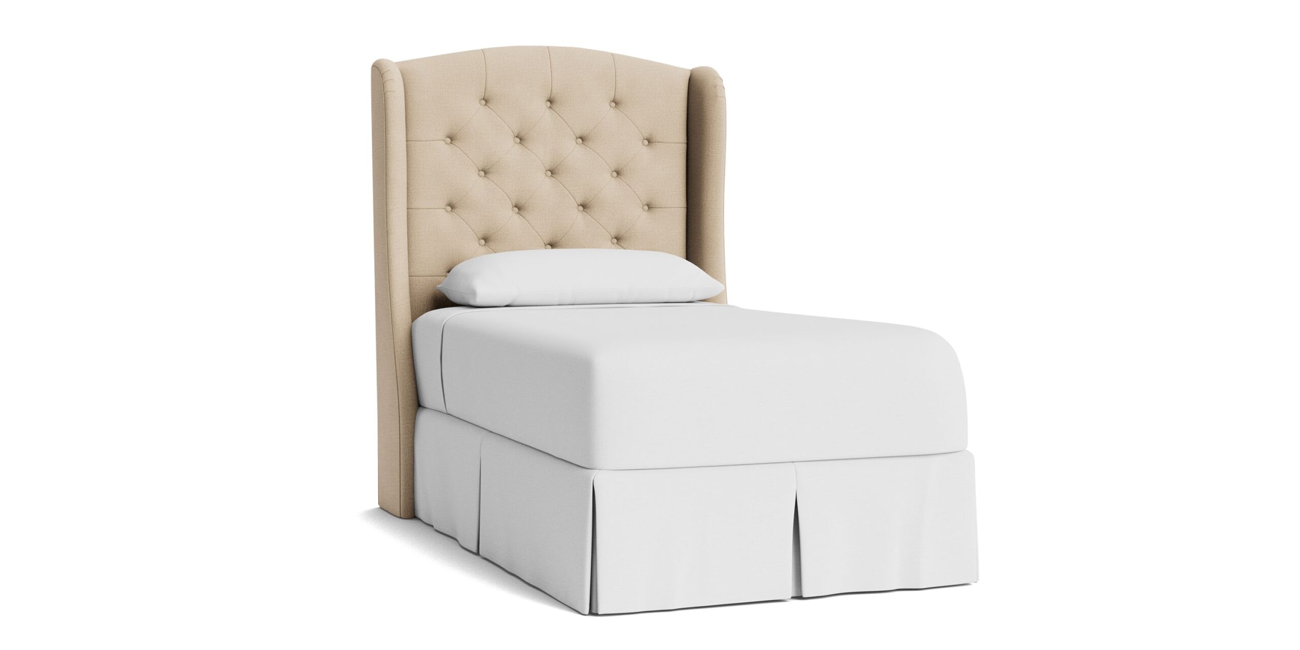 Lean into the classic curves, decorative wings, and tufted texture of the Paris Tufted Upholstered Bed. Customize your regally upholstered bed with your choice of designer fabric, creating a modern throne of repose. You can choose a complete bed frame or just the headboard. If you opt for a complete bedframe, you can then select your preferred style of wood leg – tapered or turned. The elegant Paris is available in 5 sizes, from Twin to California King. Please note: When ordering a complete bed frame, you may need longer rails to accommodate an Adjustable Base. Compare the dimensions of your base to the interior dimensions of the upholstered bed frame or contact our Customer Service if you’d like assistance.