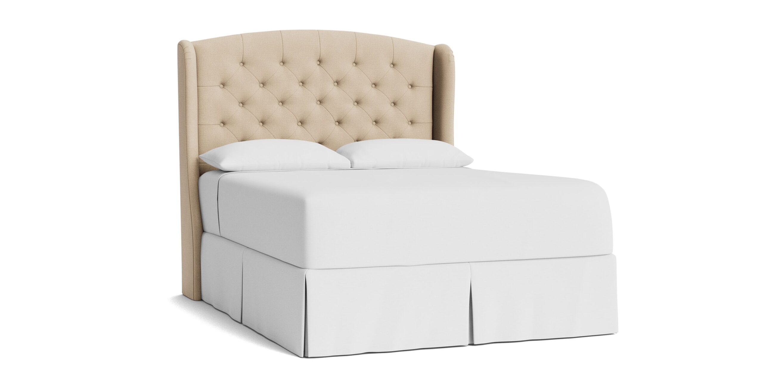 Lean into the classic curves, decorative wings, and tufted texture of the Paris Tufted Upholstered Bed. Customize your regally upholstered bed with your choice of designer fabric, creating a modern throne of repose. You can choose a complete bed frame or just the headboard. If you opt for a complete bedframe, you can then select your preferred style of wood leg – tapered or turned. The elegant Paris is available in 5 sizes, from Twin to California King. Please note: When ordering a complete bed frame, you may need longer rails to accommodate an Adjustable Base. Compare the dimensions of your base to the interior dimensions of the upholstered bed frame or contact our Customer Service if you’d like assistance.