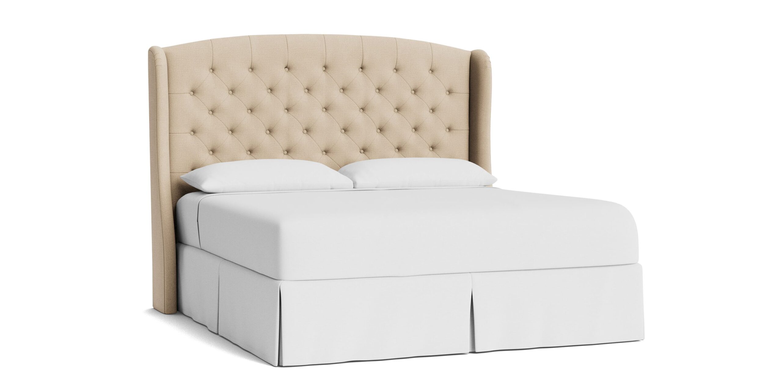 Lean into the classic curves, decorative wings, and tufted texture of the Paris Tufted Upholstered Bed. Customize your regally upholstered bed with your choice of designer fabric, creating a modern throne of repose. You can choose a complete bed frame or just the headboard. If you opt for a complete bedframe, you can then select your preferred style of wood leg – tapered or turned. The elegant Paris is available in 5 sizes, from Twin to California King. Please note: When ordering a complete bed frame, you may need longer rails to accommodate an Adjustable Base. Compare the dimensions of your base to the interior dimensions of the upholstered bed frame or contact our Customer Service if you’d like assistance.