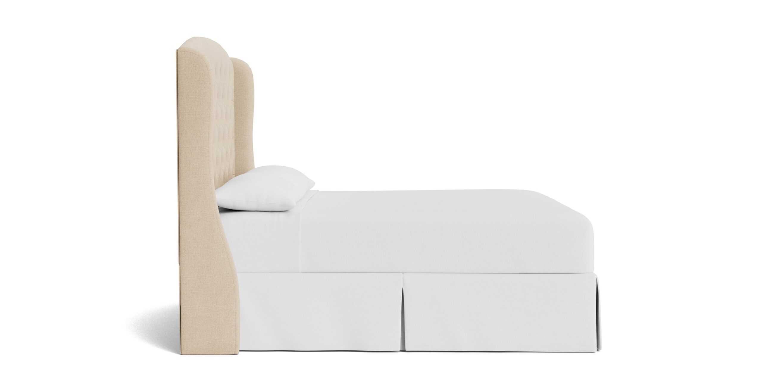 Lean into the classic curves, decorative wings, and tufted texture of the Paris Tufted Upholstered Bed. Customize your regally upholstered bed with your choice of designer fabric, creating a modern throne of repose. You can choose a complete bed frame or just the headboard. If you opt for a complete bedframe, you can then select your preferred style of wood leg – tapered or turned. The elegant Paris is available in 5 sizes, from Twin to California King. Please note: When ordering a complete bed frame, you may need longer rails to accommodate an Adjustable Base. Compare the dimensions of your base to the interior dimensions of the upholstered bed frame or contact our Customer Service if you’d like assistance.